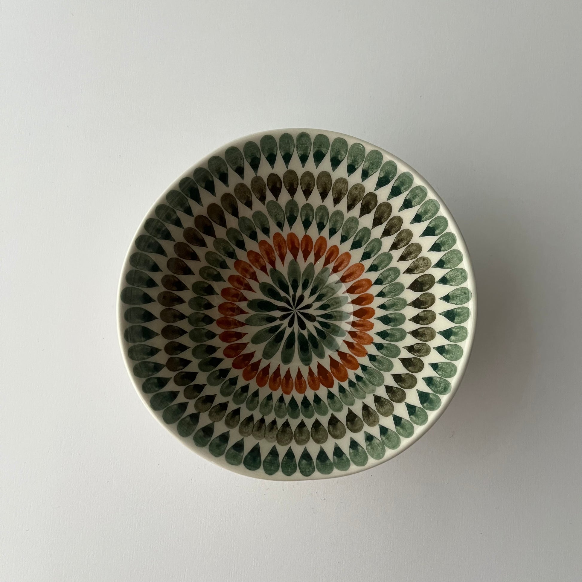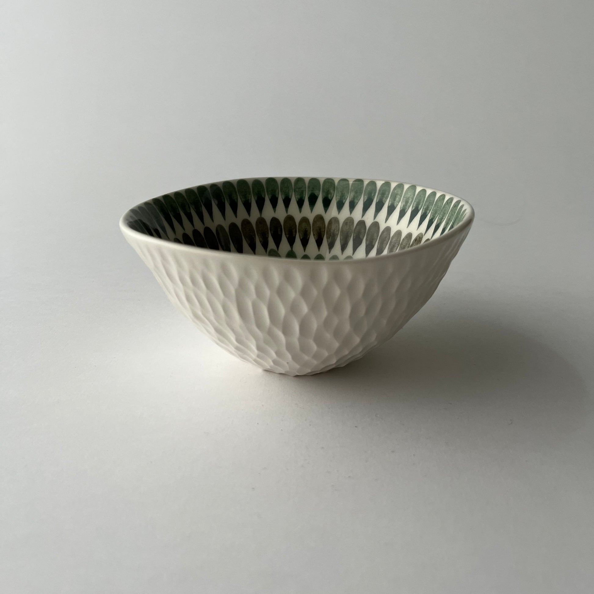 Handmade bowl crafted from white clay and decorated with underglaze pigments. The carved surface gives the bowl a lightness that makes it pleasant to hold. This bowl enlivens interiors and adds a playful touch. It can be used for food preparation, dining, or table serving.