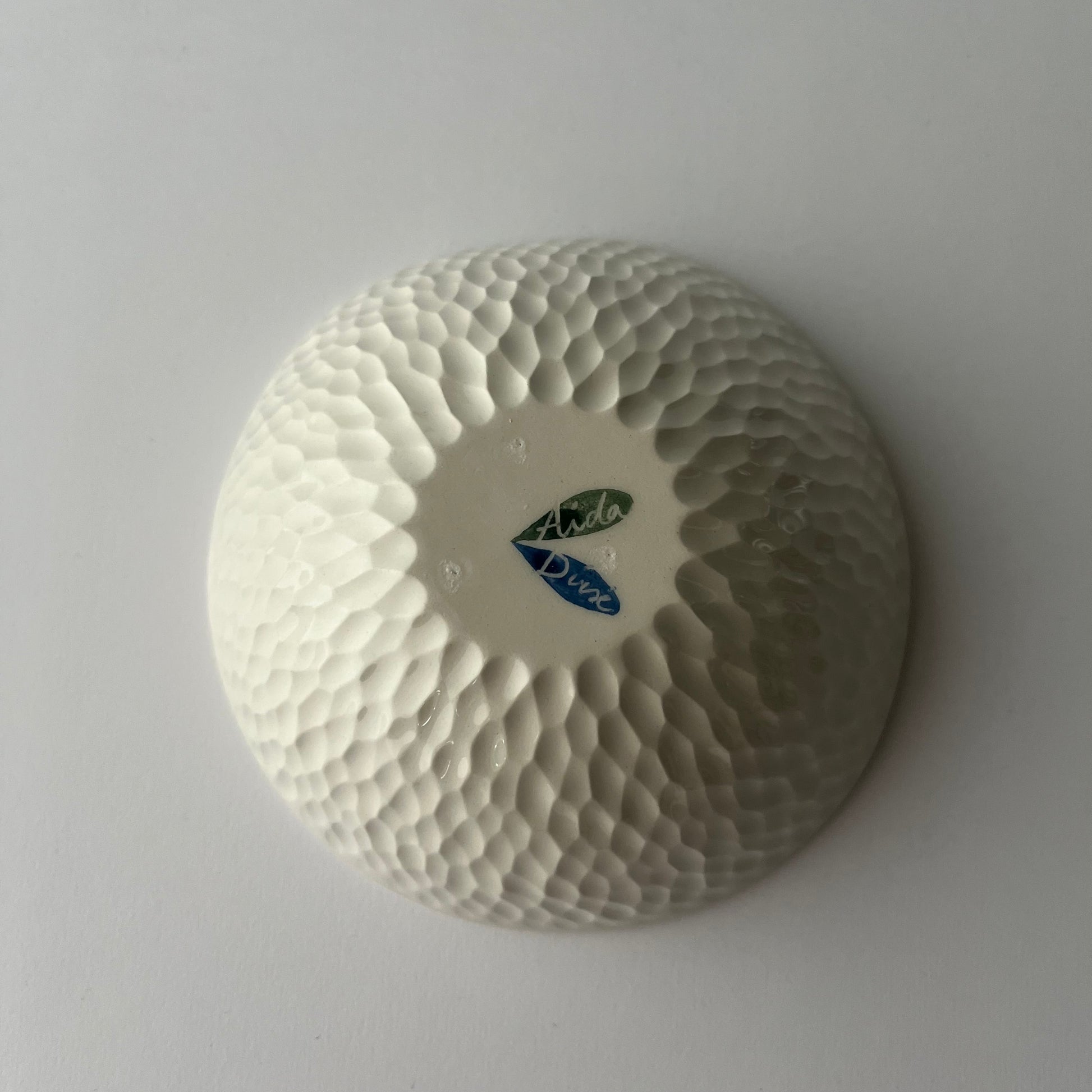 Handmade bowl crafted from white clay and decorated with underglaze pigments. The carved surface gives the bowl a lightness that makes it pleasant to hold. This bowl enlivens interiors and adds a playful touch. It can be used for food preparation, dining, or table serving.